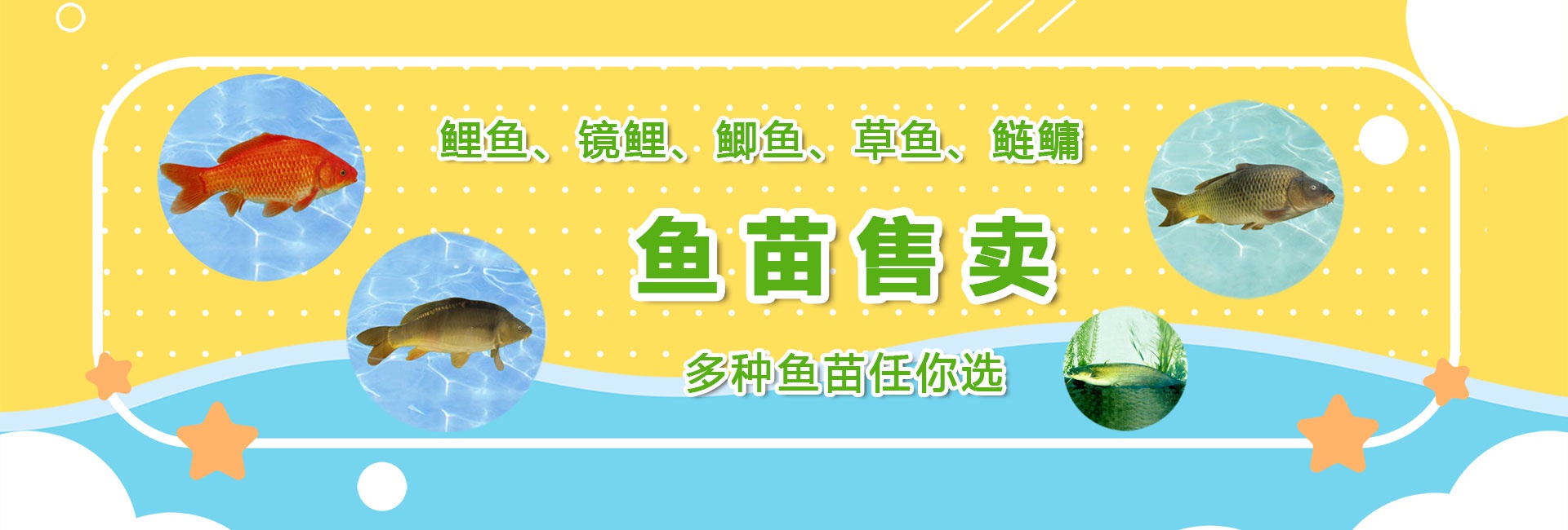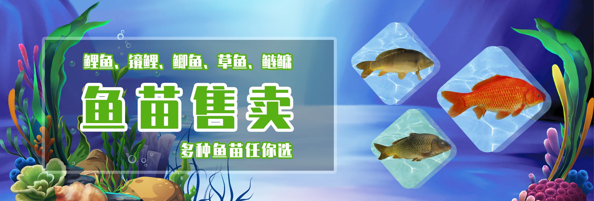 “多種魚苗任你選!竭誠歡迎廣大朋友光臨指導,洽談業務,共創水產事業輝煌美好的明天!”